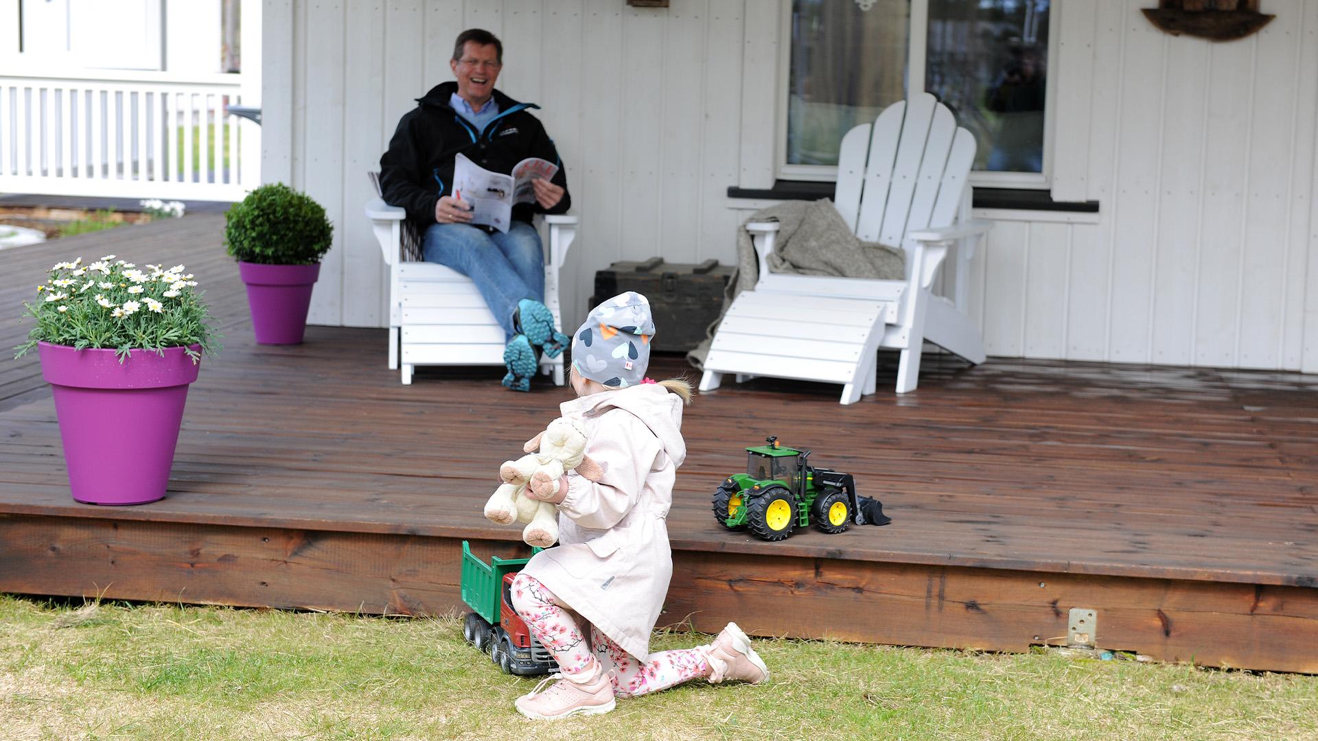 Terrasse kan du bygge uten å søke så fremt den ikke ligger høyere enn 1 meter fra terrenget og har et gelender på maks 1,2 meter i høyden.