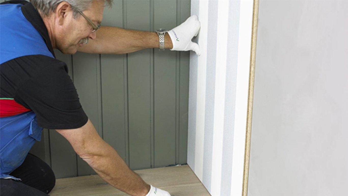 - Neste plate presser du inn i sporet til den første platen, samtidig som du presser den godt inn mot veggen.
